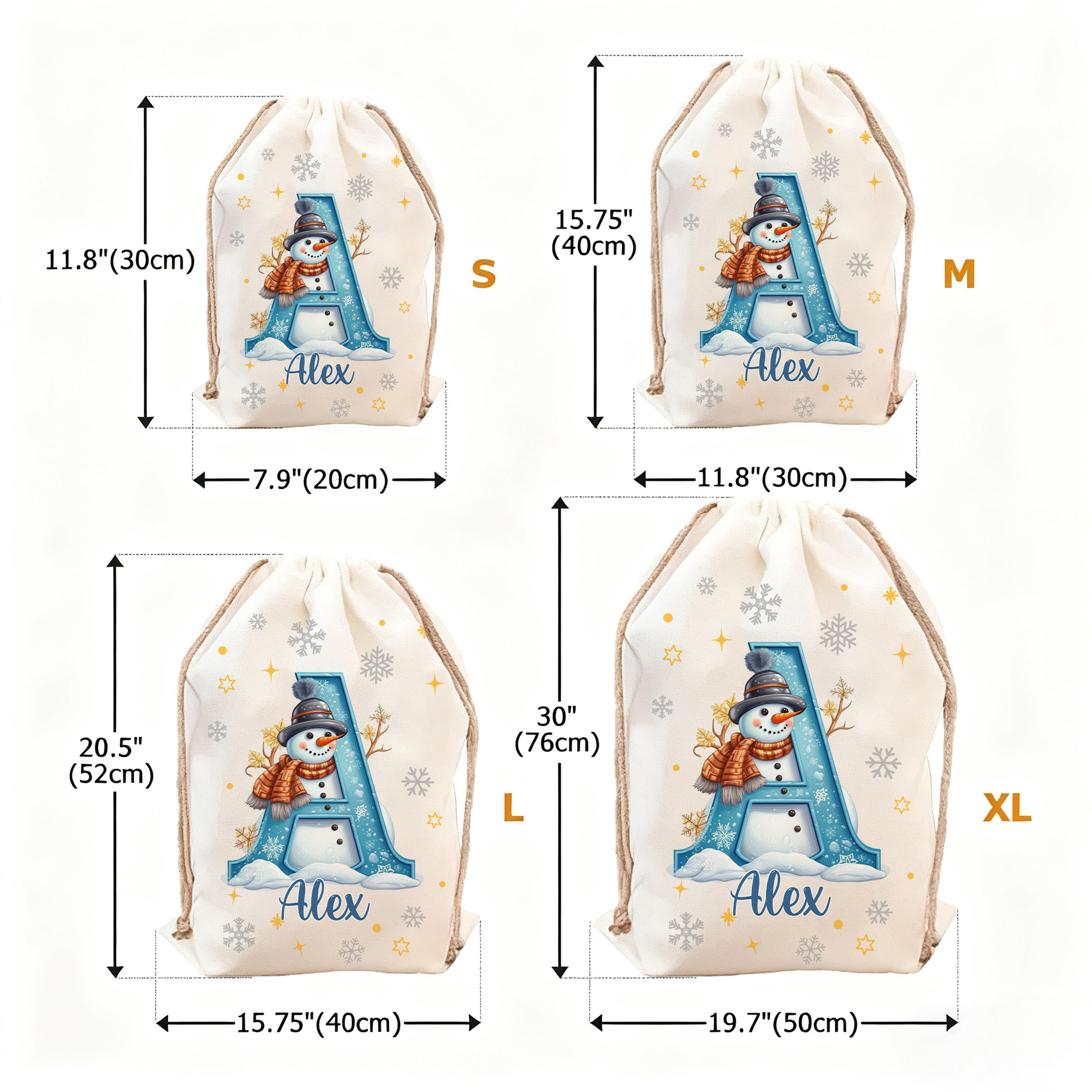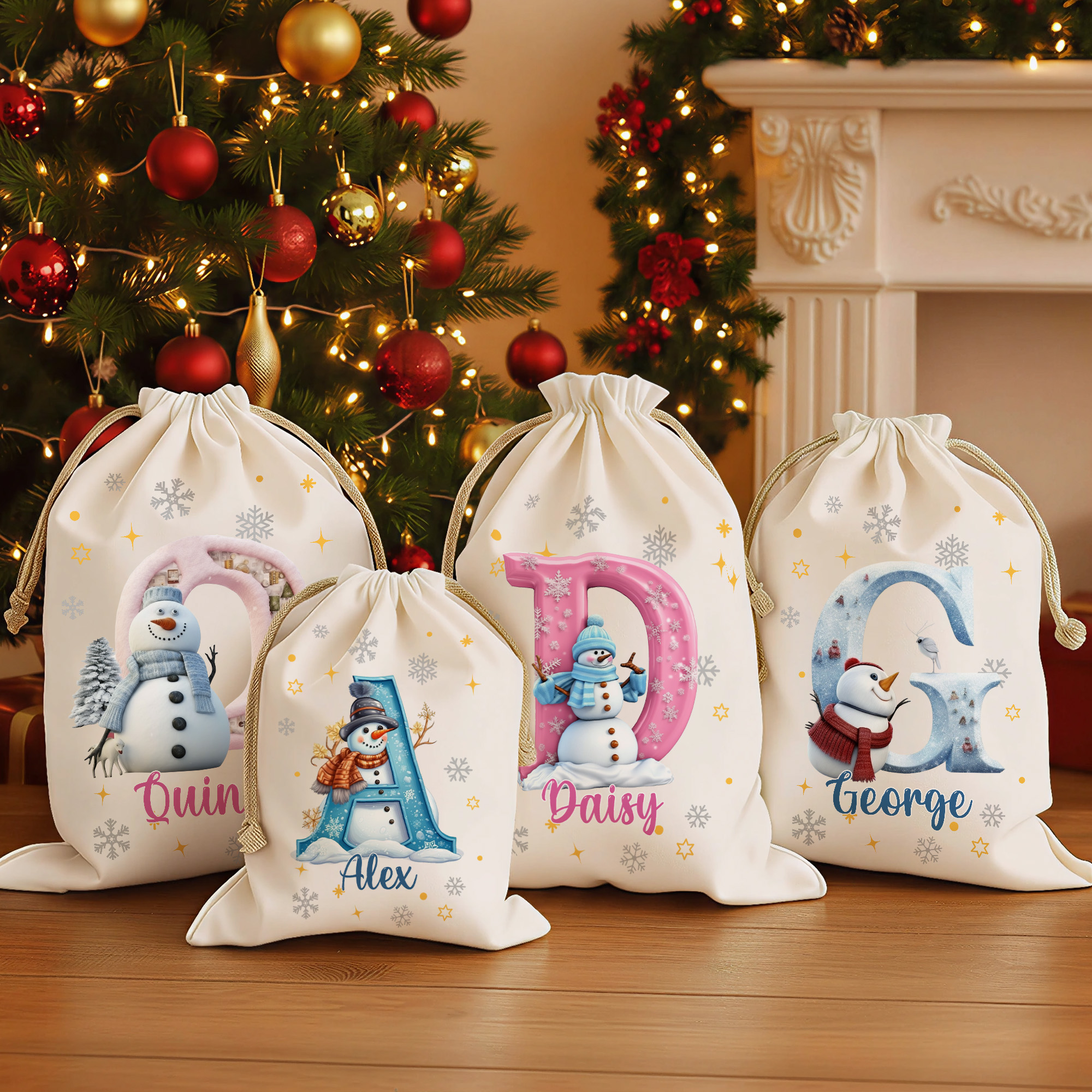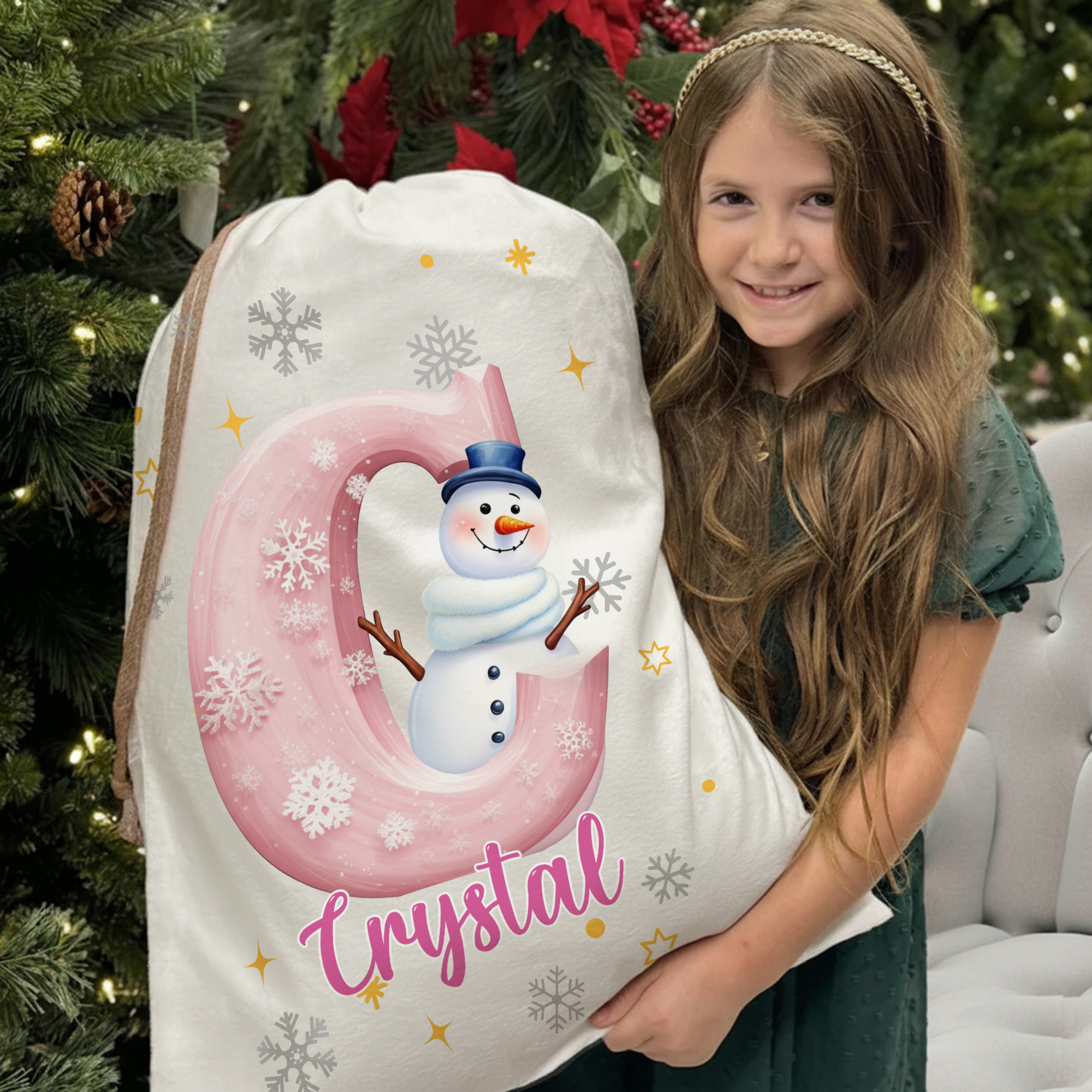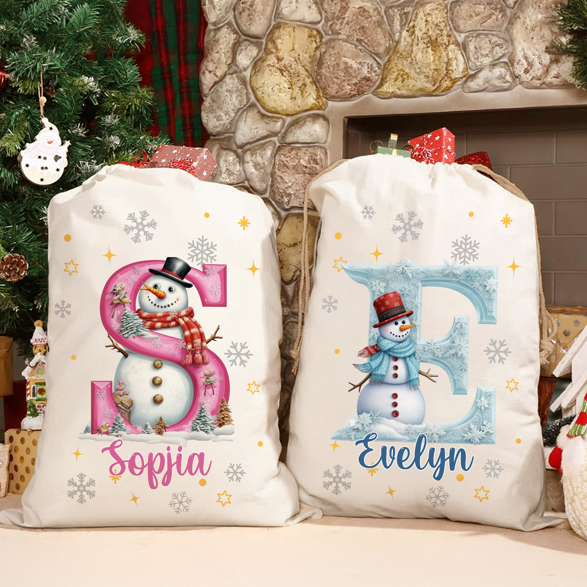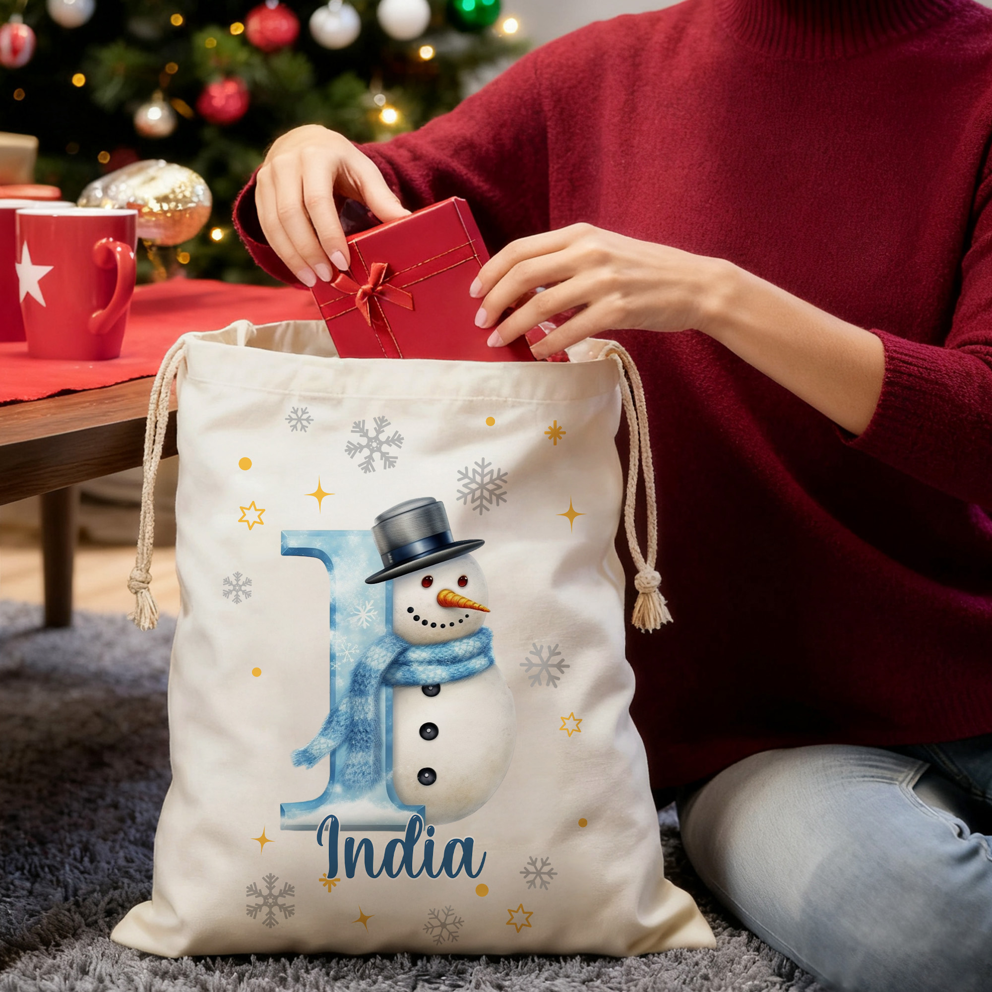 Personalized Snowman Christmas Gift Bag – Custom Initial & Name Holiday Sack
