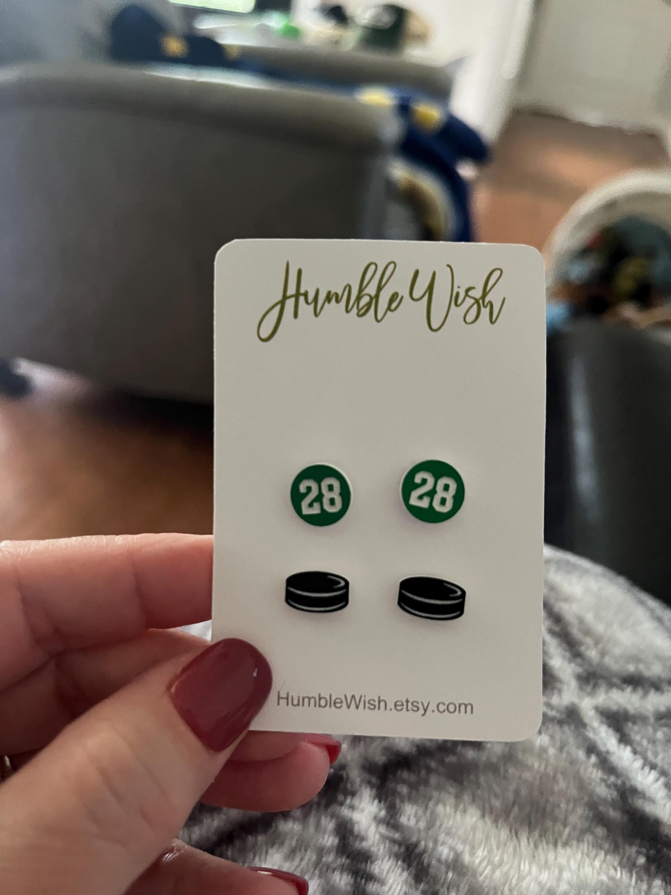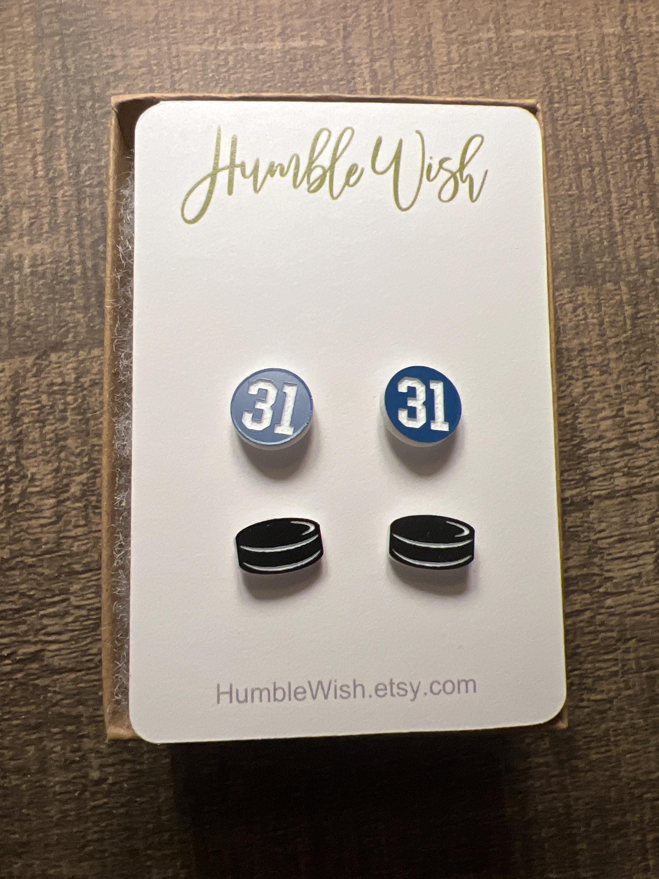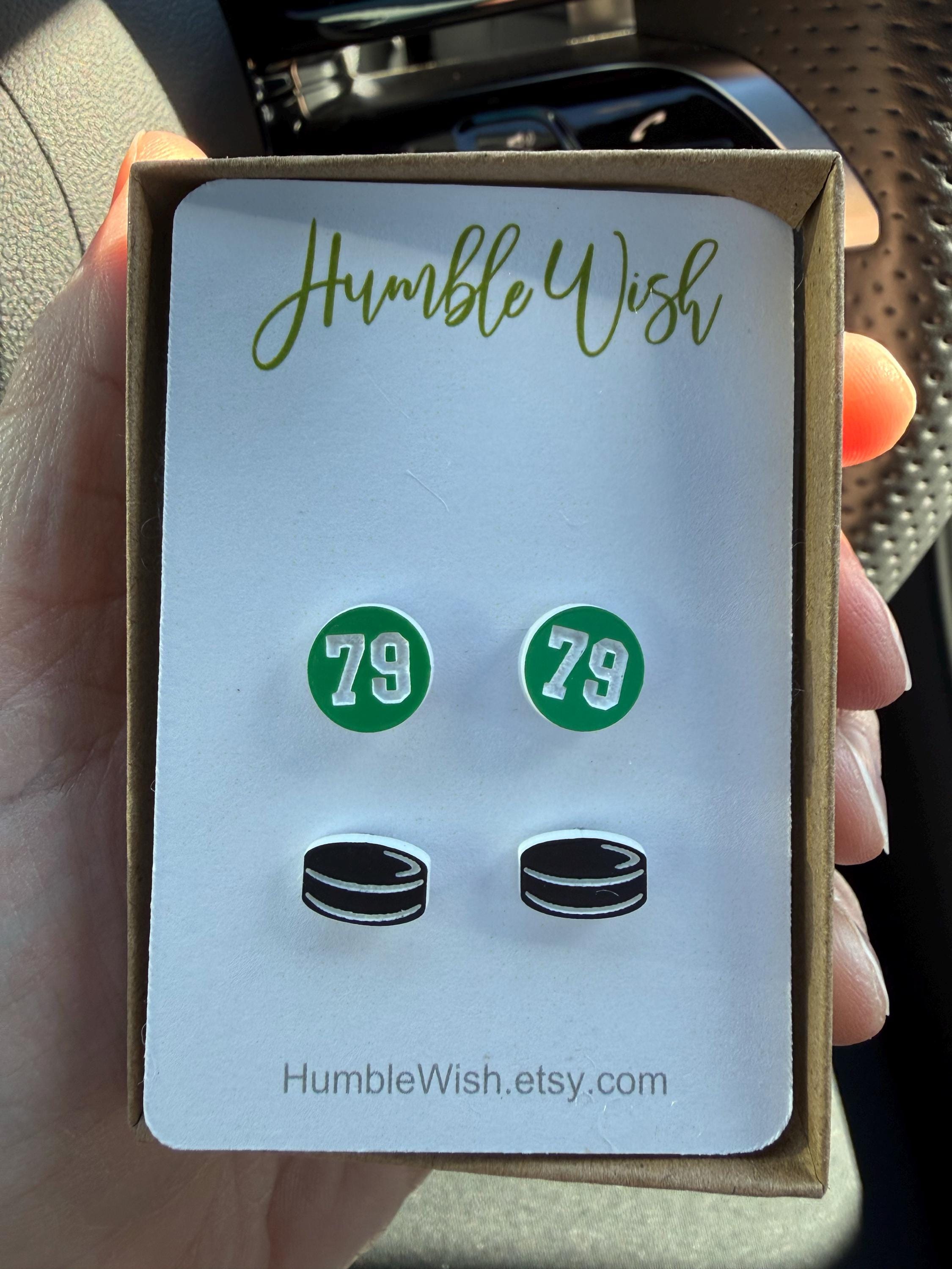 Hockey Earrings - Set of 2 Stud Earrings - Hockey Puck Personalized Number Custom Color - Hockey Jewelry Gift for Player Mom Fan Coach Team