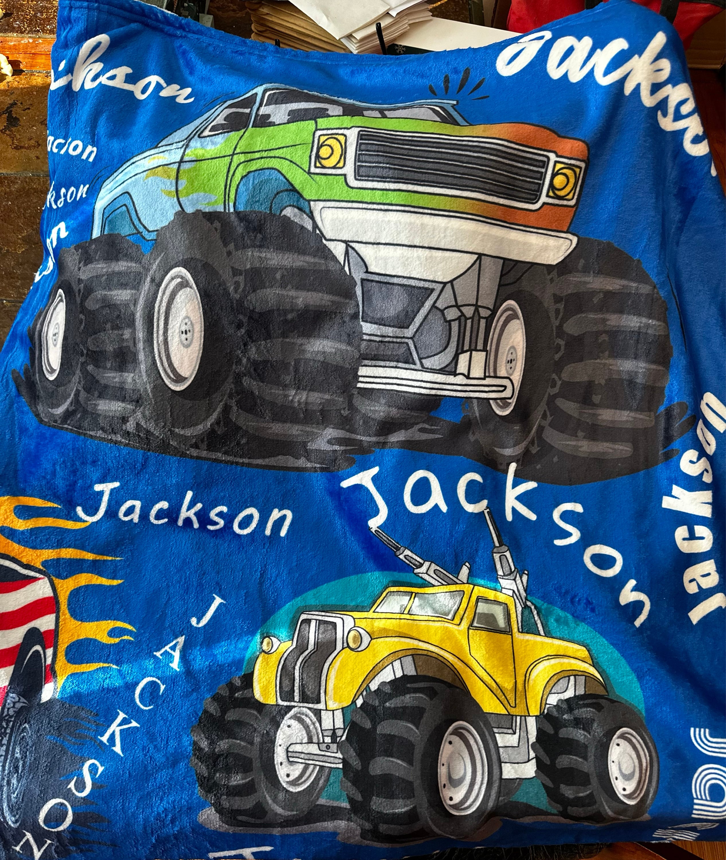 ❤️Personalized Monster Truck throw Blanket Gift❤️