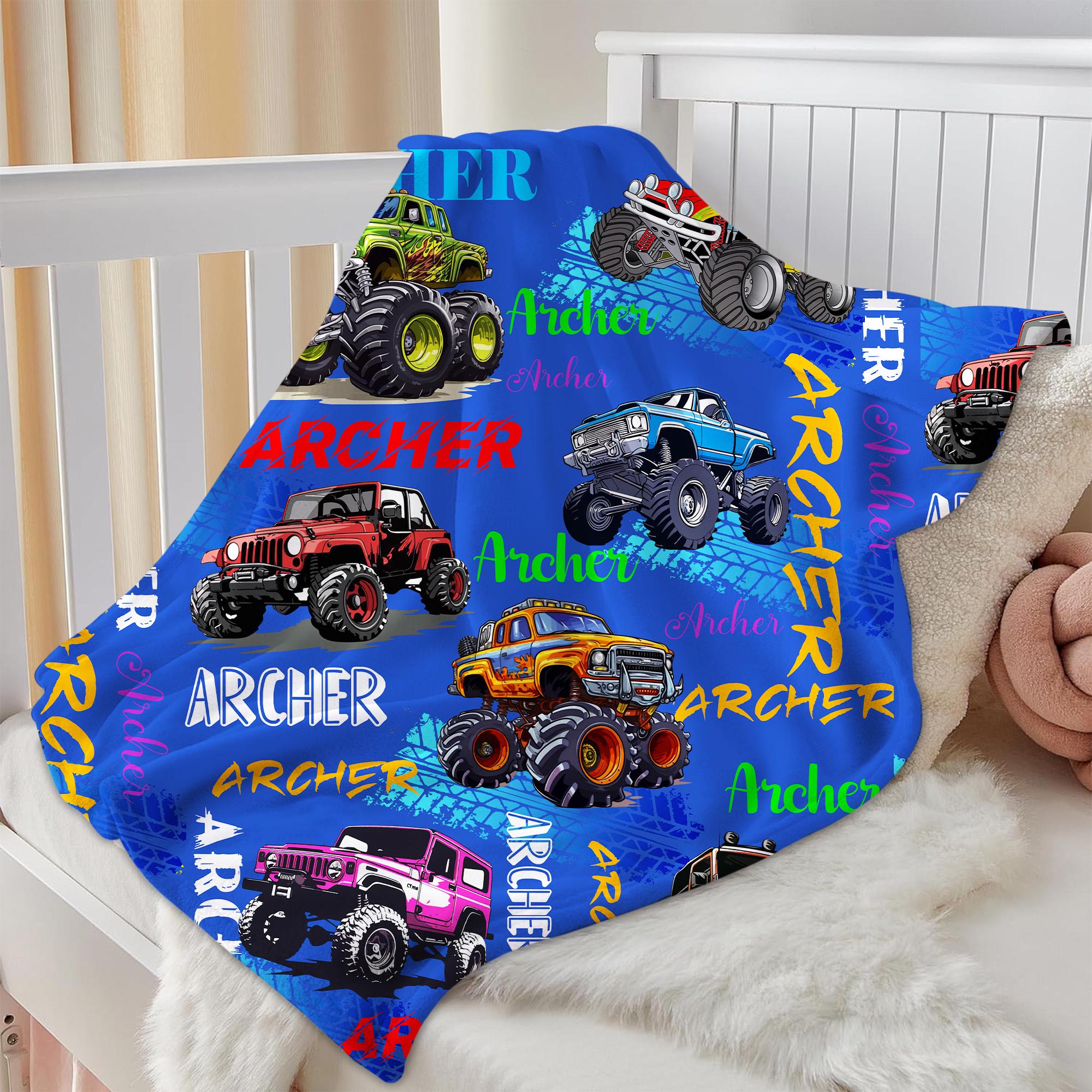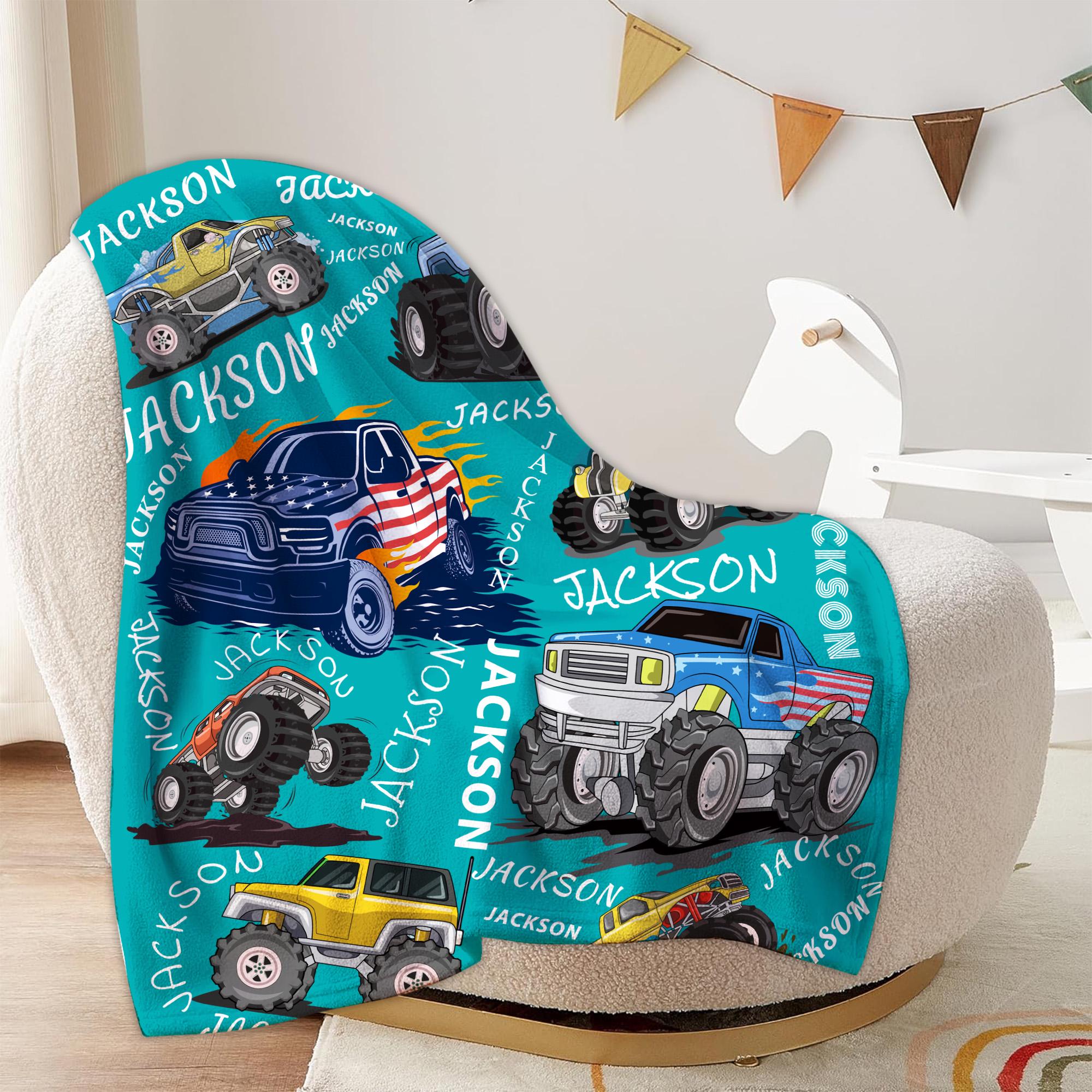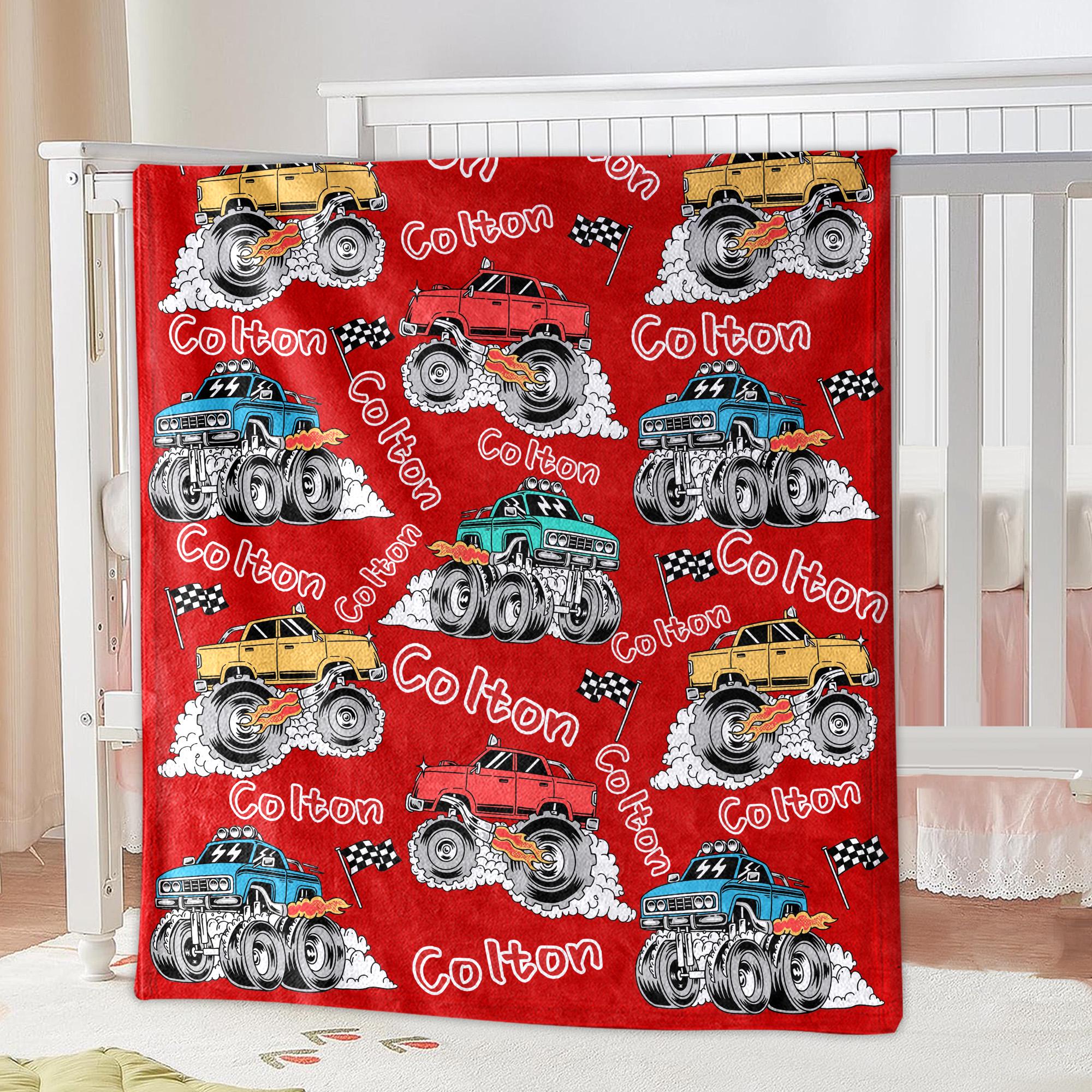 ✨Create your own awesome Monster car name pattern baby blanket with this personalized Ultra-Soft Micro Fleece blanket! And it can be personalized with name of your choice to make it perfectly unique and yours.✨